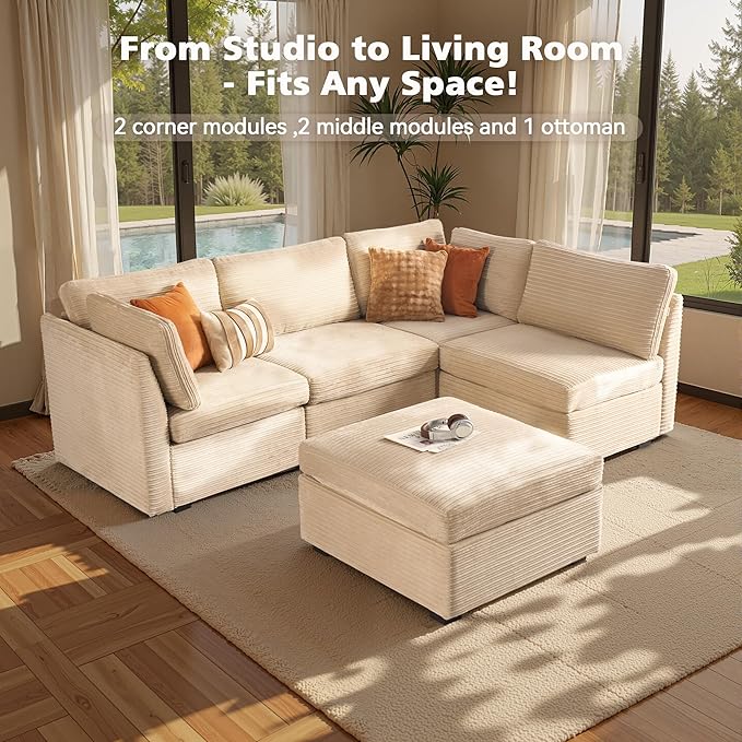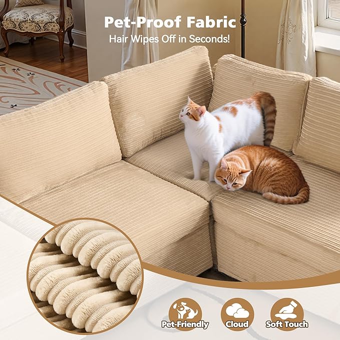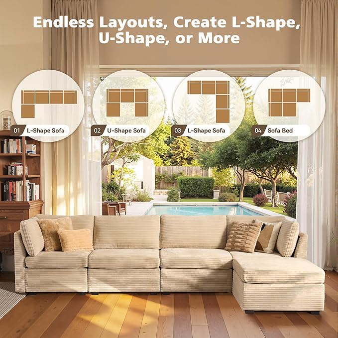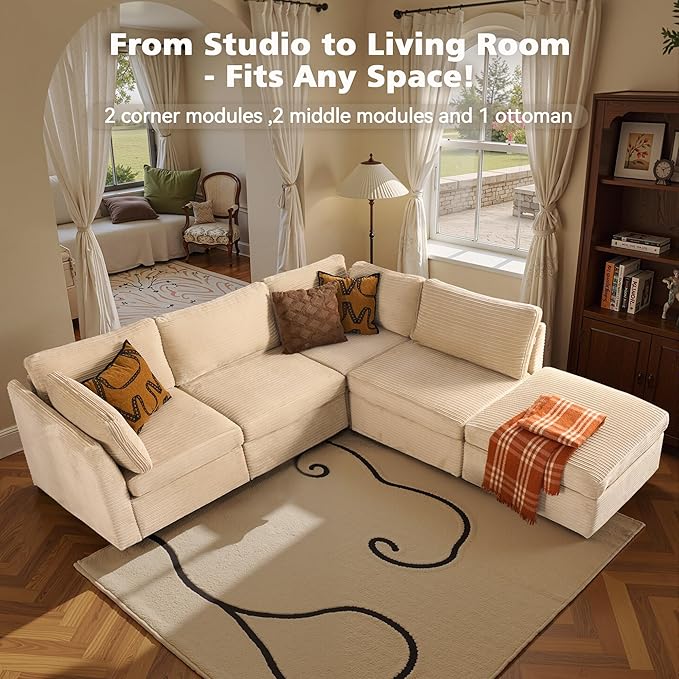 - Spacious Furniture:Sturdy solid wood frame, high-end breathable Plush corduroy fabric, filled with high rebound sponge, making this modular sectional sofa beautiful and comfortable, it can be a perfect match for your living room, bedroom, home office, etc.