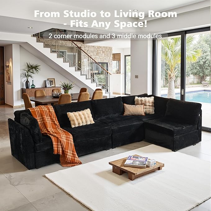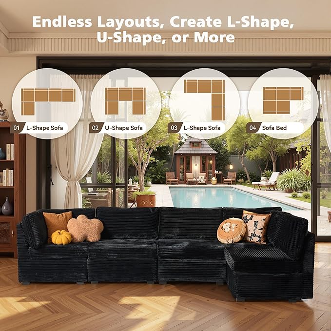 - Spacious Furniture:Sturdy solid wood frame, high-end breathable Plush corduroy fabric, filled with high rebound sponge, making this modular sectional sofa beautiful and comfortable, it can be a perfect match for your living room, bedroom, home office, etc.