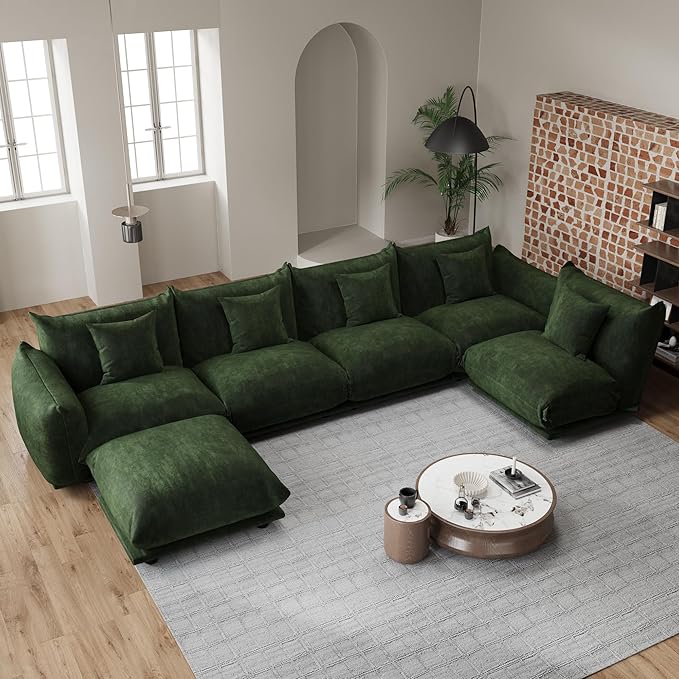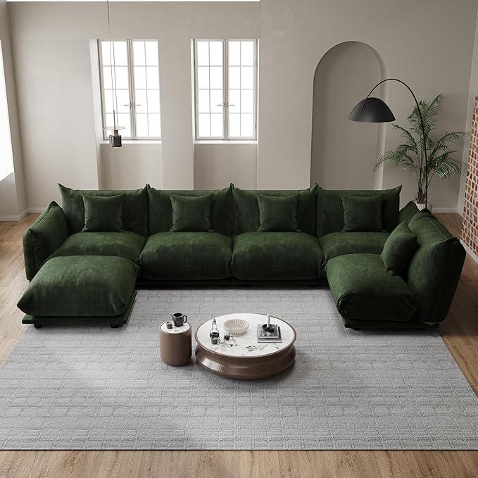 Modern Minimalist Chenille Modular Sectional Sofa, Oversized Deep-Seat U-Shaped Couch with Movable Ottoman, Thick Cushions, Upholstered Sofa for Living Room, Bedroom, Office, Apartment Green 1 Ottoman
