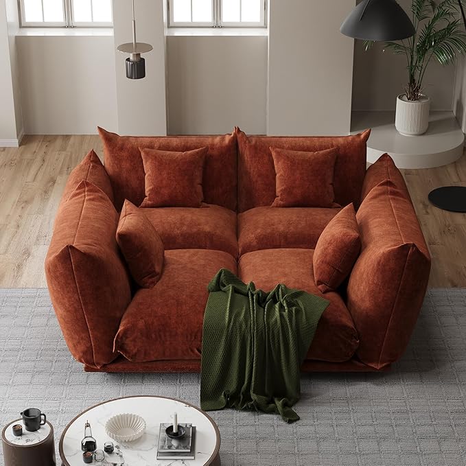 smilesun Modern Minimalist Chenille Modular Sectional Sofa, Oversized Couch and Loveseat Set with Thick Cushions, Upholstered Sofa for Living Room, Bedroom, Office, Apartment(Orange,136" 4-Seater)