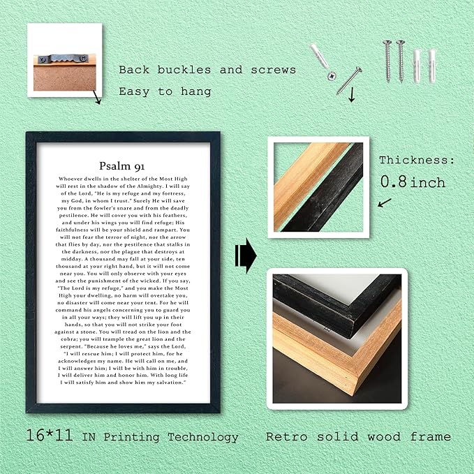 LuZhiQiang Psalm 91 Scripture Wall Art 16"×11" Bible Verse Christian Inspirational Sign Wood Framed Wall Hanging Decor (Black)