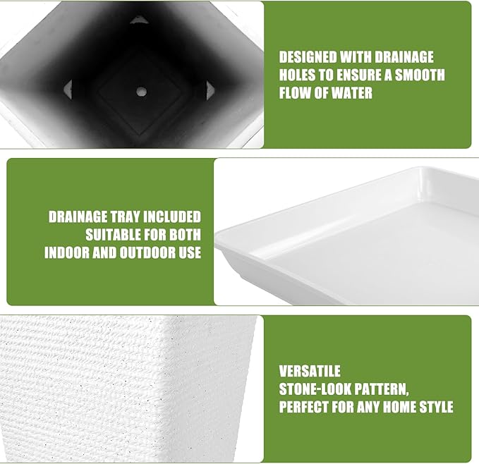 - Worried About Root Rot from Poor Drainage?These tall outdoor planters set of 2 with built-in drainage holes let excess water escape easily,preventing rot. Great for tall flower pots lovers who want healthy roots