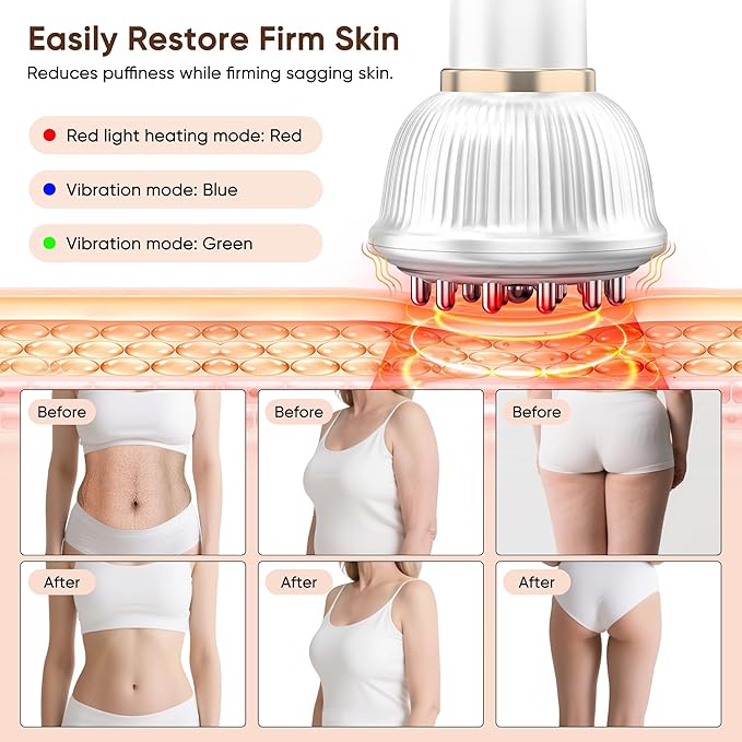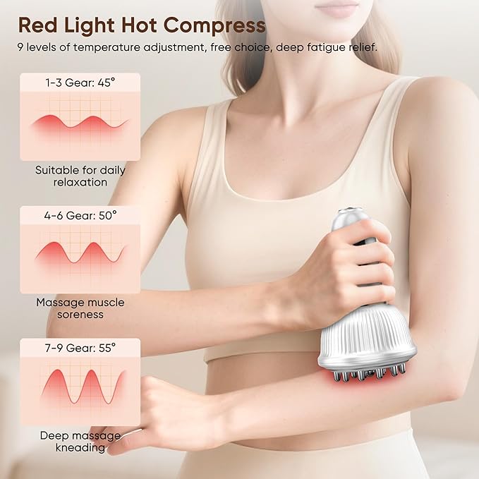 - [9-level Red Light Temperature Compress]:Skin Tightening Device for Body includes 9 levels of intelligent temperature control from 45°C to 55°C, bringing a SPA-like warm wrapping experience. Deep heat effectively relieves tight muscles, tightens the skin. Every use is a double enjoyment of relaxation and skin rejuvenation.