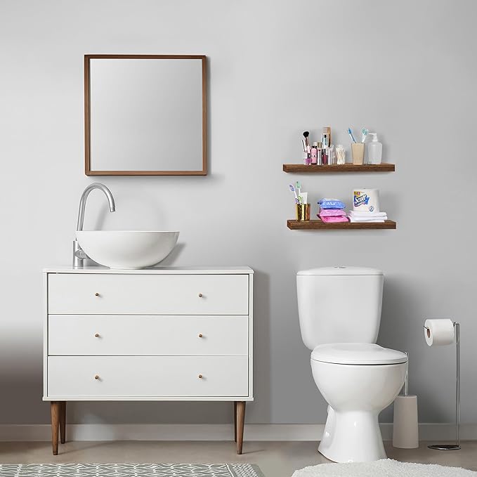 Sorbus Floating Shelves for Wall, Bathroom Shelves Wall Mounted for Kitchen, Bedroom, Bathroom Storage Over Toilet, Hanging Book Shelf for Home Decor Living Room (Walnut, 2 Pack)