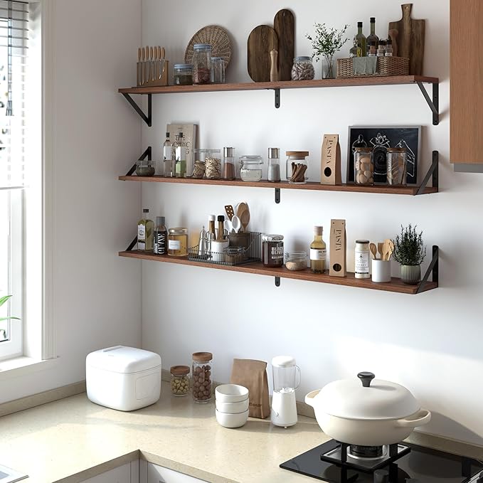 Heimlove 48 Inch Large Wall Bookshelves Set of 3, Wall Mounted Bookshelves,Heavy Duty Wooden Shelves for Living Room,Bedroom,Kitchen,Laundry Room Storage & Decor
