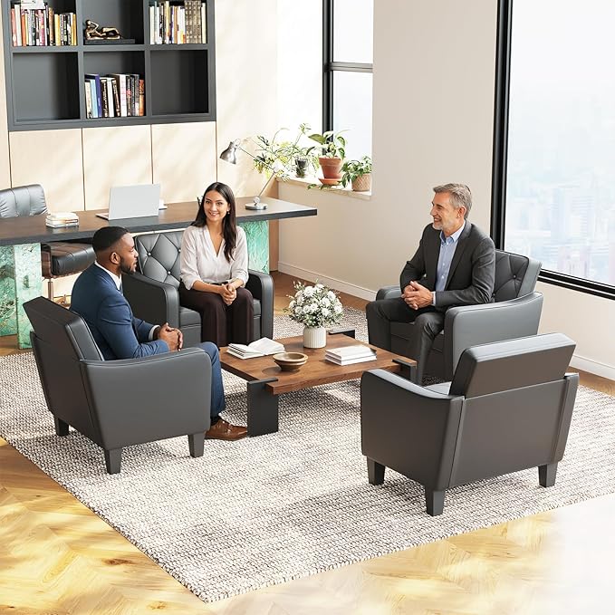 STHOUYN Living Room Chairs Black Leather Accent Chairs Set of 2, Waiting Room Arm Chairs, Reading Chairs for Bedroom Comfy Club Chair Tufted, Office Small Space (2, Black)