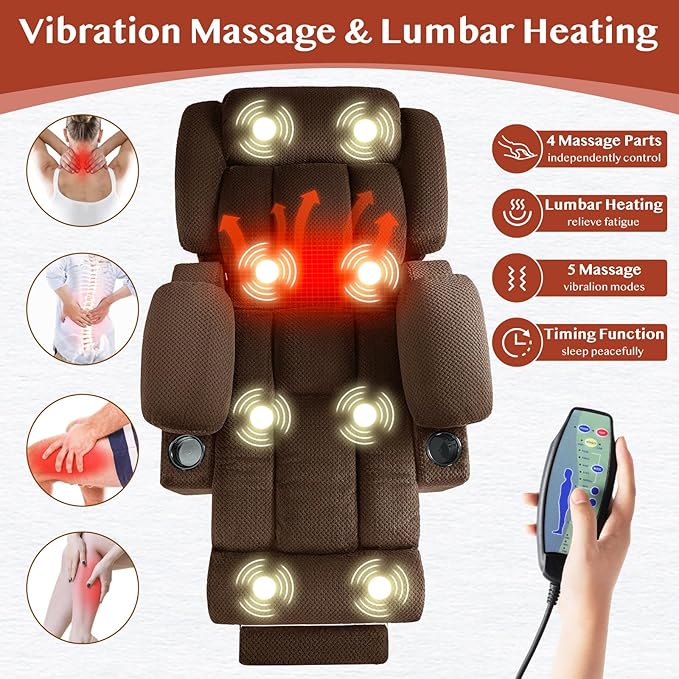 - Vibration Massage & Lumbar Heating: Experience relaxation with our lift chairs recliners for elderly. 8 vibration points targeting your back, lumbar, thighs, and legs, an advanced heating system focused on the lumbar area, providing warmth from 113℉ to 140℉