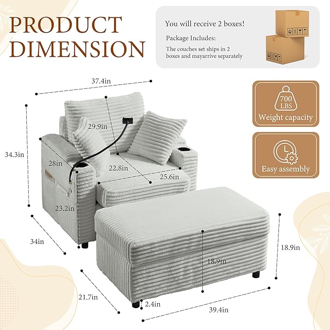 - Versatile Movable Ottoman — Lounge Chair Indoor with Hidden Storage: The movable ottoman lets you customize your comfort—use it as a footrest, a chaise lounge, or even a small table. Plus, it features hidden storage, so your essentials stay organized and close by, ideal for any lounge chair indoor setup.