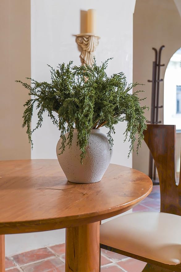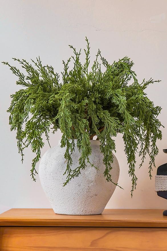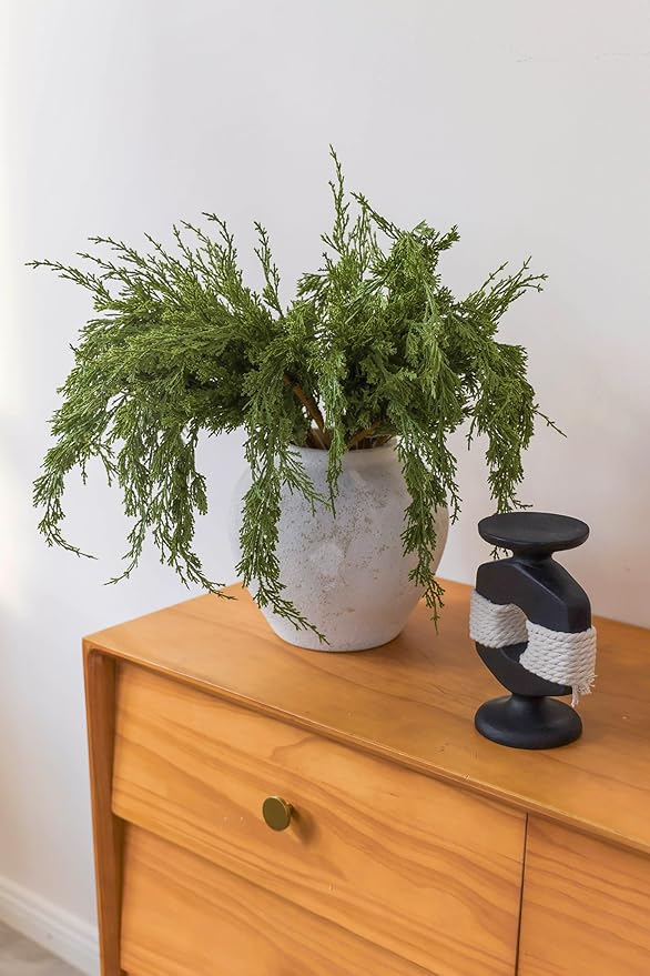 - 2. Premium Quality and Natural Appearance: Crafted from high-quality PE, these branches mimic the natural green color of real cedar, offering both aesthetic beauty and durability.After opening the package, simply let the product air out for a few hours to eliminate any initial odor, ensuring a better experience. Note: Vase not included.