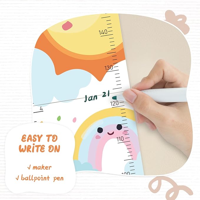 - Easy to Mark: The height measurement is engraved with clear and precise scales, you can customize different shapes of marker cards to record baby's height(with name and date), which is convenient for you to record your baby's growth moments at any time and witness every step of your baby's growth.