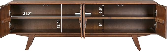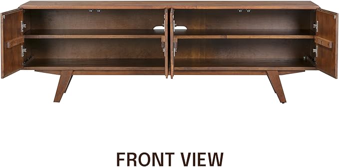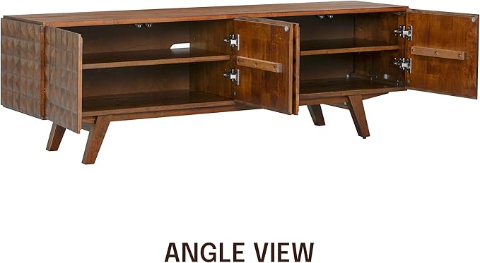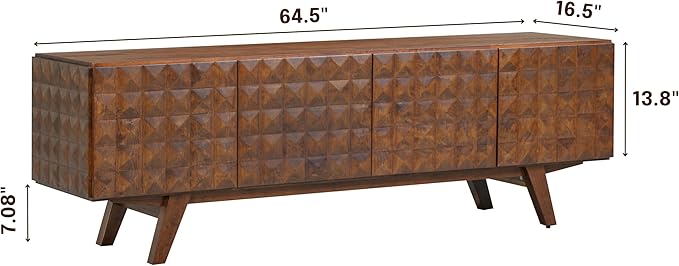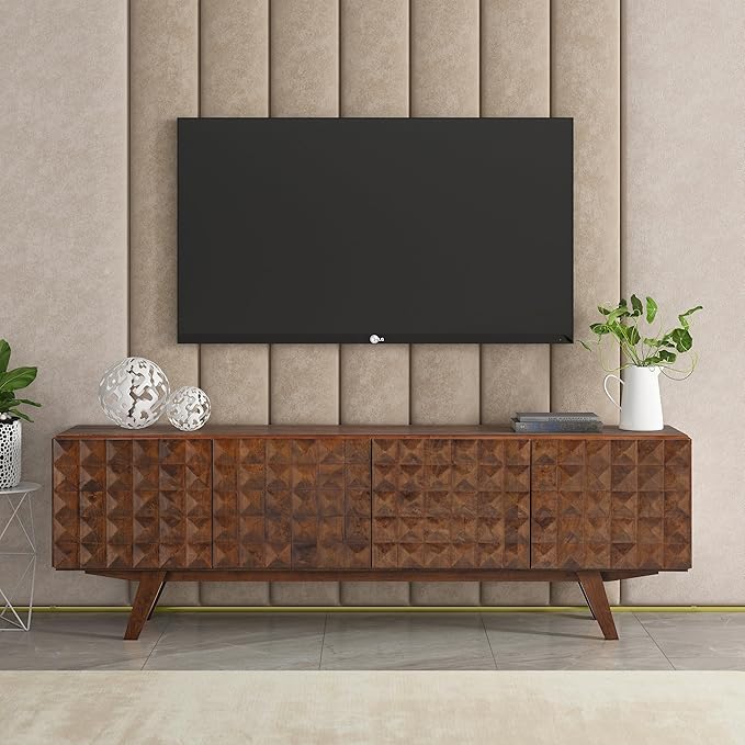 NTC Sapa Mid-Century Modern Solid Wood TV Stand 4-Door Media Console with Carved Geometric Fronts for TVs up to 75", Effortless Assembly, Dark Walnut
