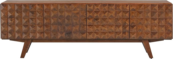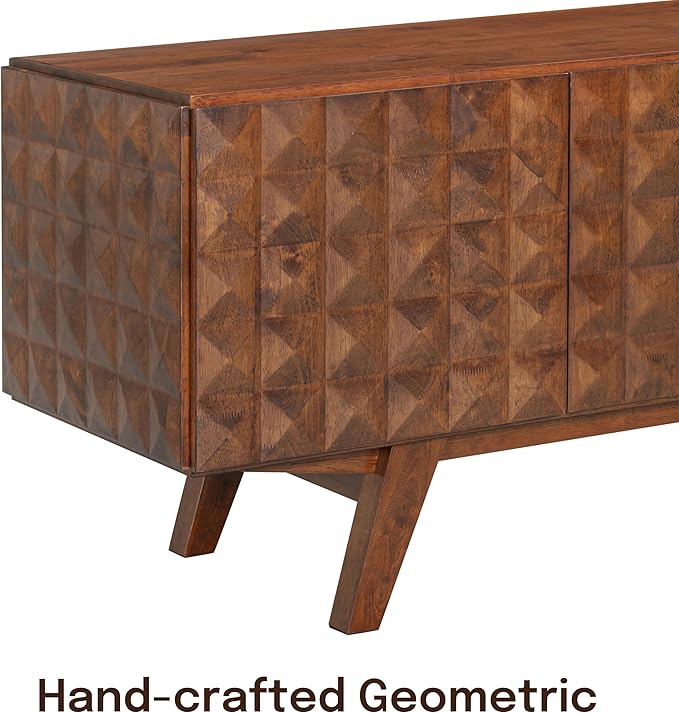 - HAND-CARVED GEOMETRIC DOORS: Showcases unique 3D diamond patterns on all four doors, giving the cabinet an upscale, designer-inspired aesthetic.