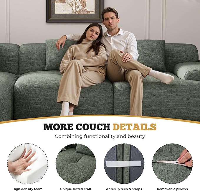 - Breathable Chenille Fabric: The L-shaped couch features high-quality chenille fabric that is very Sturdy and not easy to pilling, which ensures long time use. At the same time, its breathability makes the sofa more comfortable, allowing you to feel refreshed and cosy while sitting on it. Enhance your living space with this elegant and comfort modern cloud couch