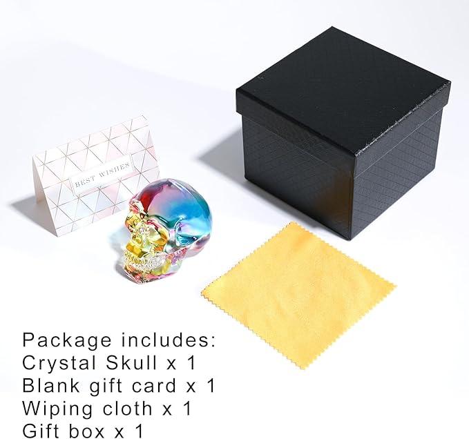- Gift Box Packaging: All our crystal skull ornaments come beautifully packaged in an exquisite gift box, which includes a cleaning cloth and a wish card (a blank card for you to write your blessings). They are ready at any time to bring her surprises and love.