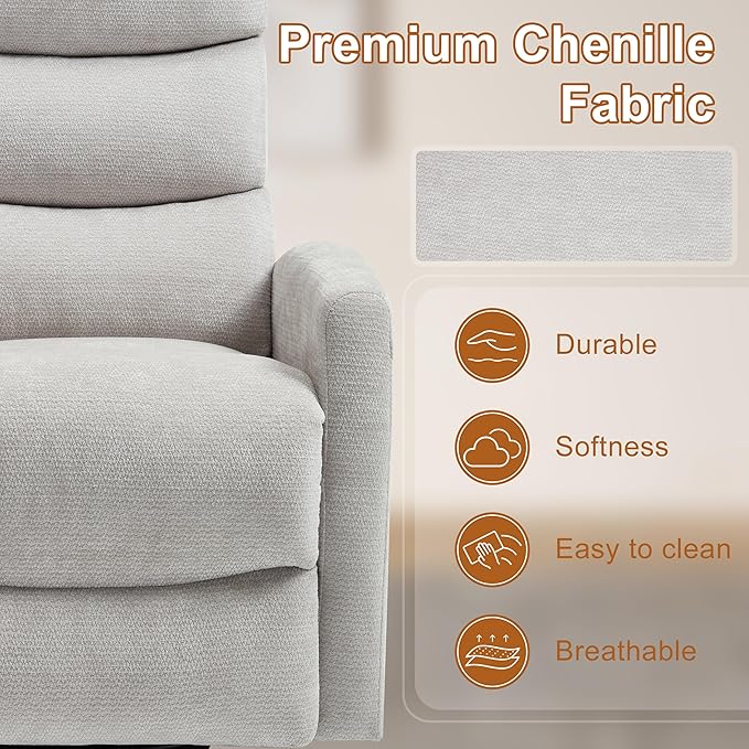 Manual Swivel Rocker Recliner Chair for Adults, Overstuffed Reclining Glider Chair for Nursing with Vibration Massage & Heat, Living Room Rocking Recliner 3-Stage backrest, Chenille Fabric Light Gray