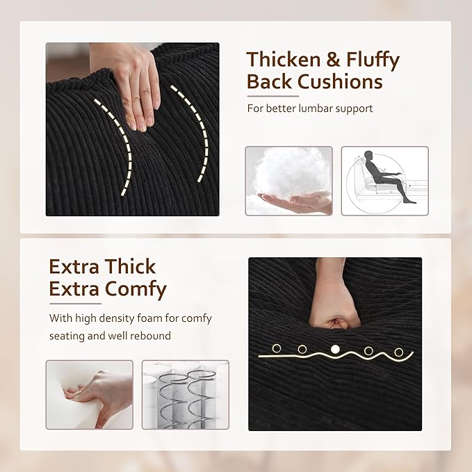 HOOOWOOO Modular Sectional Sofa Couch,Matching Free Combination Cloud Couch Ottoman Chair(Black Corduroy)