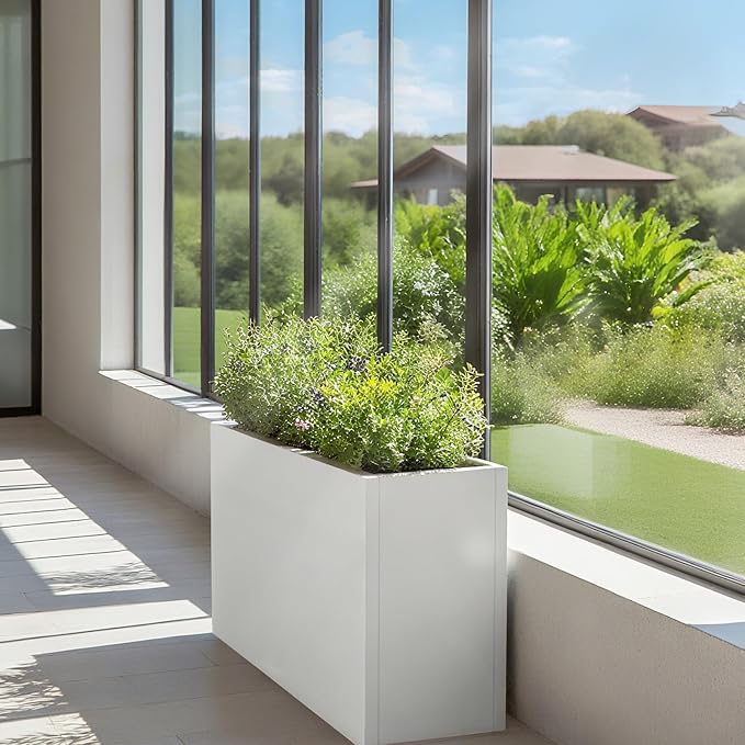Galvanized Steel Metallic Heavy Planter for Outdoor Plants Metal Outdoor Planter Spliced Flower Box with Partitions for Outside,Indoor,Garden (White, 30 * 12 * 24)