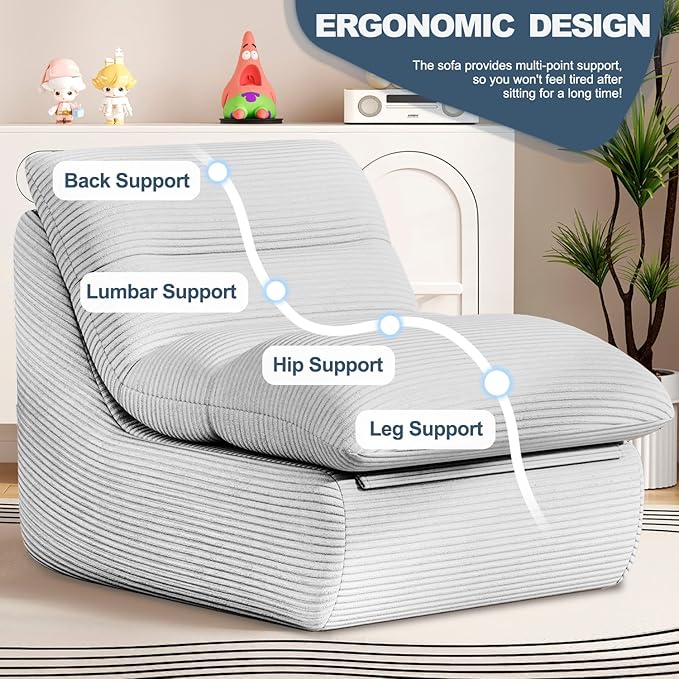 - 【Ergonomic Comfort Design】This floor Lounge sofa prioritizes your comfort with a thoughtfully engineered ergonomic design that delivers exceptional support to your neck, back, lumbar area, hips, and legs. The high-resilience foam filling conforms to your body’s contours. creating a comfortable seating experience.