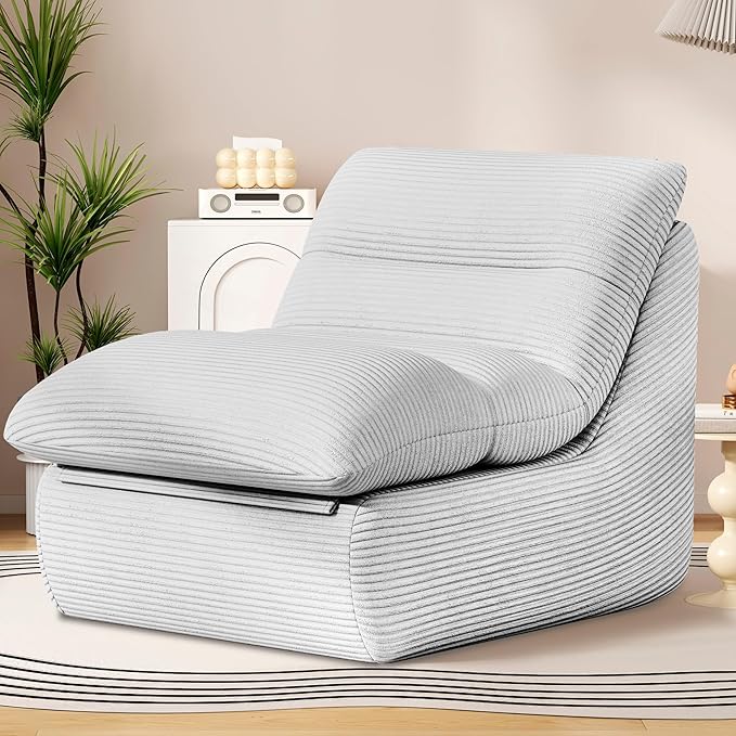 Misolant Bean Bag Chairs,Big Corduroy Fabric Sofa Bean Bag Chair for Adults and Teens with High-Resilience Sponge, Non-Slip Base Floor Lounge Sofa for Home, Living Room, Bedroom, Gaming Light Gray