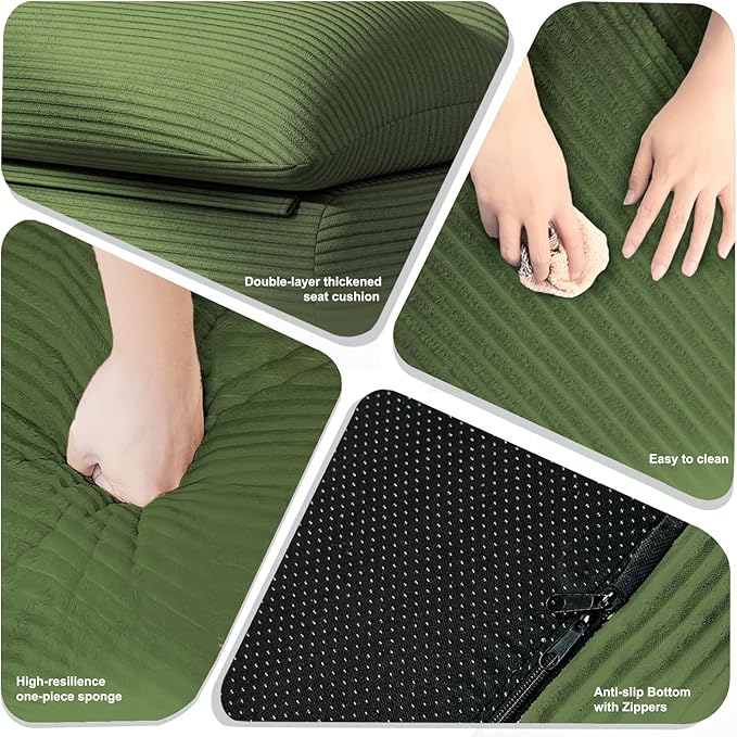 Misolant Bean Bag Chairs,Big Corduroy Fabric Sofa Bean Bag Chair for Adults and Teens with High-Resilience Sponge, Non-Slip Base Floor Lounge Sofa for Home, Living Room, Bedroom, Gaming Green