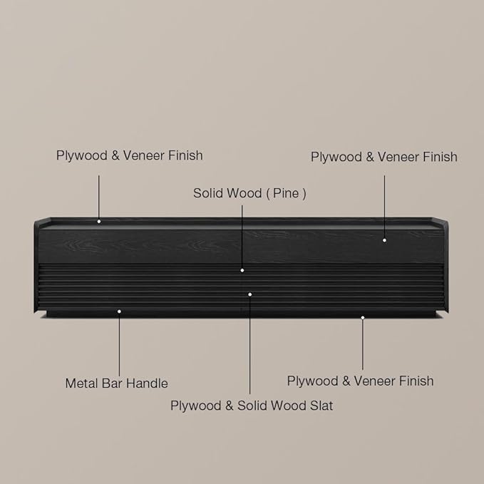 - Premium Solid Wood Construction: Crafted from high-quality solid multi-layered ash wood, this black media cabinet is built to last. It's sturdy, lasting, and designed for long-term use