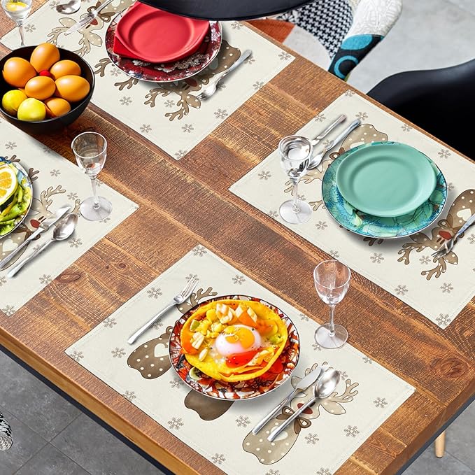 - VERSATILE OCCASIONS: Christmas reindeer table place mats are suitable for different occasions and are an excellent decorative mat for any indoor or outdoor setting, such as kitchens, dining tables, hotels, restaurants, coffee shops, and business offices. They are also a beautiful decoration for banquets, dinners, receptions, housewarming, family gatherings, parties, and leisure kitchens. This will definitely leave a deep impression on the guests