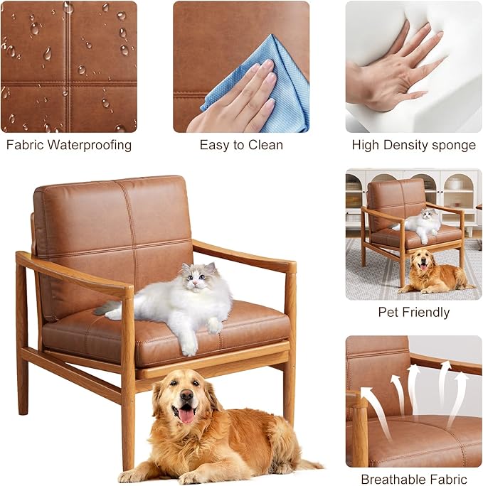 - 【Sturdy Luxurious Seating Option】This living room chairs boasts a solid wood frame, paired with soft faux leather upholstery, durable foam padding, and heavy-duty springs—delivering exceptional support and long-lasting comfort. It arrives in vacuum packaging and bounces back to its original shape instantly once unpacked, with no sagging or flattening over time. Perfect as a reading chair for adults or a bedroom chair, it’s ideal for any cozy corner.