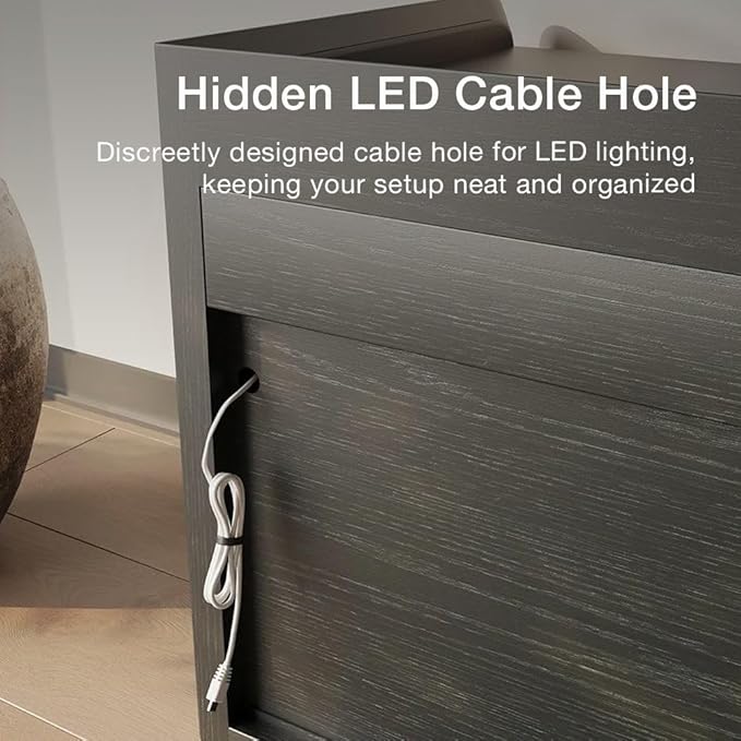 - Integrated LED Lighting: Enjoy the convenience of built-in LED lighting. The warm, 6-level adjustable lighting with remote control enhances the visual appeal of your TV console and makes your displayed items stand out