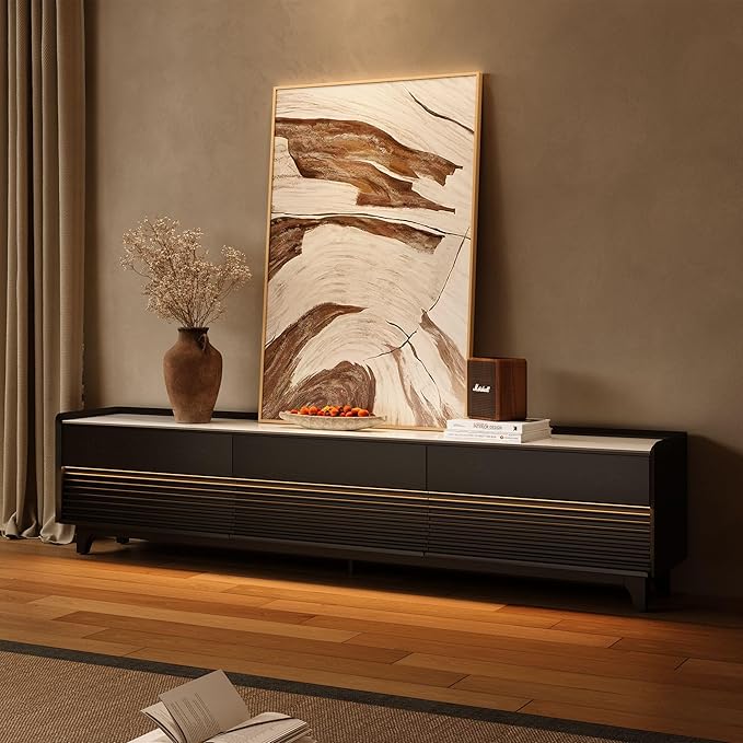 - Fully Assembled TV Console: This sintered stone tv stand with Legs comes fully assembled, saving you time and effort. No complicated instructions or tools required, upon receiving it, you only need to screw the middle support foot into the corresponding hole