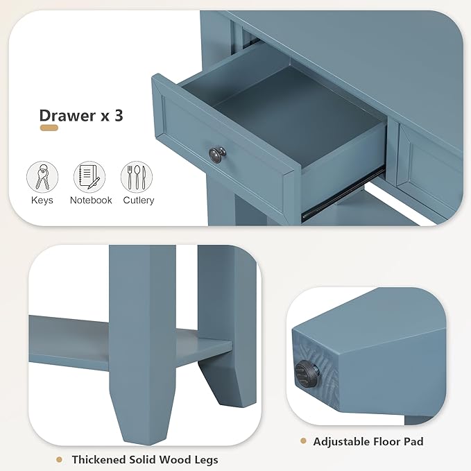 Farmhouse Modern Entryway Console Table 55.4'' Long Entry Sofa Table with Drawers & Storage Shelf for Living Room Hallway, Blue