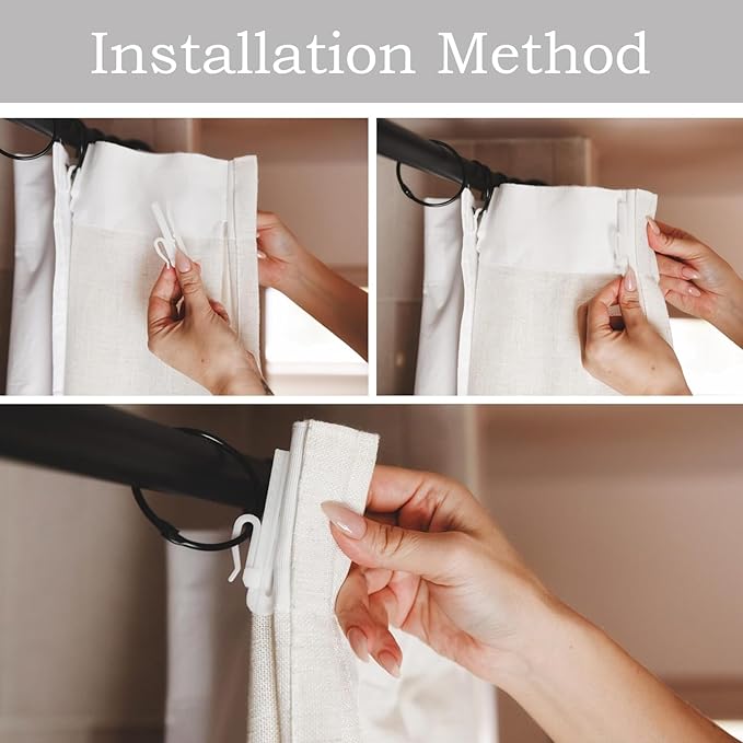 - Sizing Measurements: For pleated curtains, panel dimensions should be 1-1.2 times the width of the curtain track or rod. For example, if your pole is 100 inches long, we recommend using 2 panels 50-60 inches wide (100*1.2=120, 120/2). For length, measure from the ring hole or track rail to the floor.